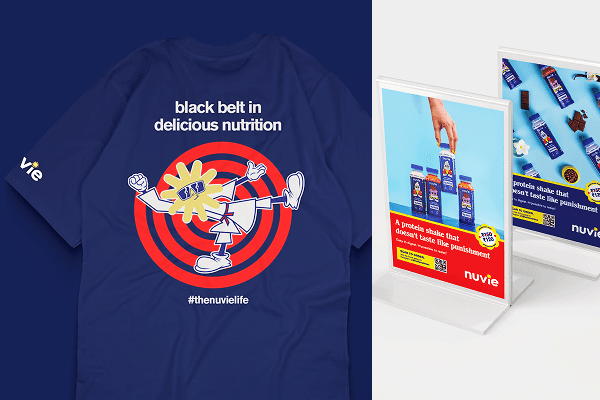 A protein shake that tastes like dessert? In a market full of brands flexing muscles and preaching discipline, we built NUVIE as the anti-protein-brand protein brand. From the winking sun logo to cartoon flavor mascots with actual personalities, every element rebels against fitness intimidation. "Nutrition for Life" means fitting into your life, not forcing you into theirs.
